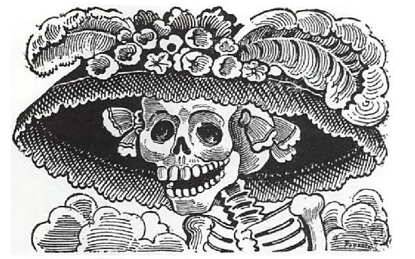 Imagem de Jose Guadalupe Posada, considerado por diversos autores como o verdadeiro artista do povo e percussor do movimento mexicano nacionalista de artes plásticas. Célebre pelos seus desenhos, gravuras sobre a morte e suas caricaturas políticas.